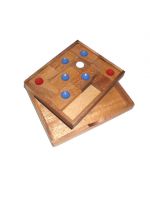 Description: The aim of the puzzle is to slide the two L-shaped blocks together so that they form a rectangle. The pieces start in the positions shown in the photograph. Blocks may not be lifted out of the tray or rotated. The other part of the puzzle is to achieve this within a prescribed number of moves. |